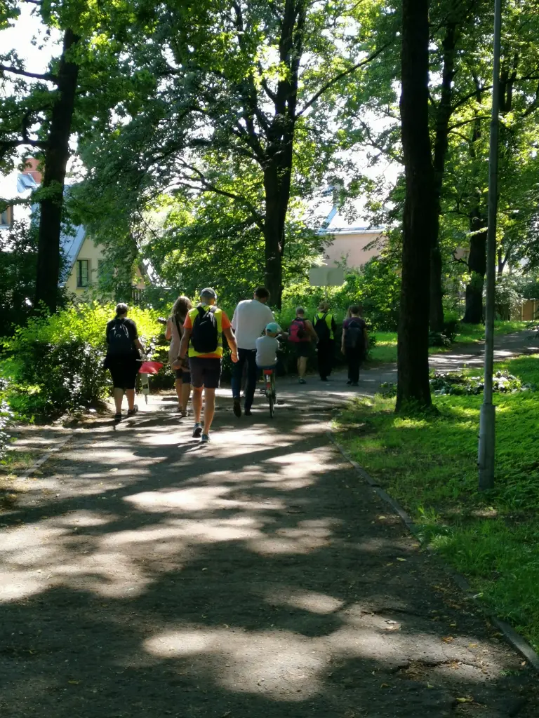 Saņēmusi svētību un brokastis Kūrijas dārzā, mazā svētceļnieku “ģimene” devās ceļā uz Baltezeru un pirmo dienu kopā ar svētceļniekiem gāja arī katedrāles vikārs. Ceļā grupiņu pavadīja TV 3 žurnālisti, kuriem īsas intervijas sniedza svētceļojuma dalībnieki.