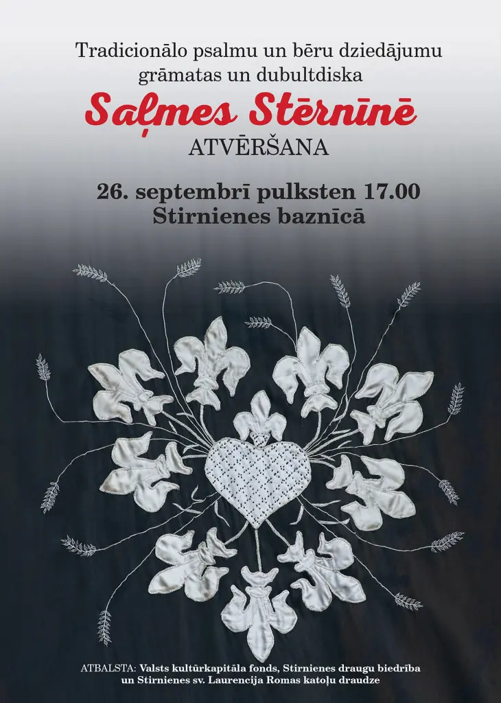 Lai saglabātu un atjaunotu psalmu dziedāšanas tradīciju Stirnienē, tās apkaimē un interesentu sabiedrībā, kā arī uzturētu tās ilgtspēju, veidotu un publicētu kvalitatīvu izglītojošu materiālu, iekļautu to mūžizglītībā un apgūtu, tālāknodotu un popularizētu nemateriālās kultūras mantojuma lietpratēju zināšanas un prasmes, ar Valsts kultūrkapitāla fonda atbalstu izdots tradicionālo psalmu un bēru dziedājumu krājums un dubultdisks “Saļmes Stērnīnē”. Krājuma izdevējs ir Stirnienes draugu biedrība (redaktore Ieva Zepa), psalmu dziedājumu notis digitalizējusi Bernadeta Eversa, iedziedājuši Stirnienes apkaimes iedzīvotāji (ieraksta skaņu režisors Normunds Slava). Krājuma atvēršanas svētki Stirnienē norisināsies jau šo sestdien, 26. septembrī.