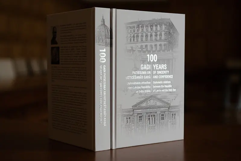 Izdevums “100 gadi patiesuma un uzticēšanās garā. Diplomātiskās attiecības starp Latvijas Republiku un Svēto Krēslu” tapis ar Ārlietu ministrijas Latvijas valsts simtgades publiskās diplomātijas programmas atbalstu.