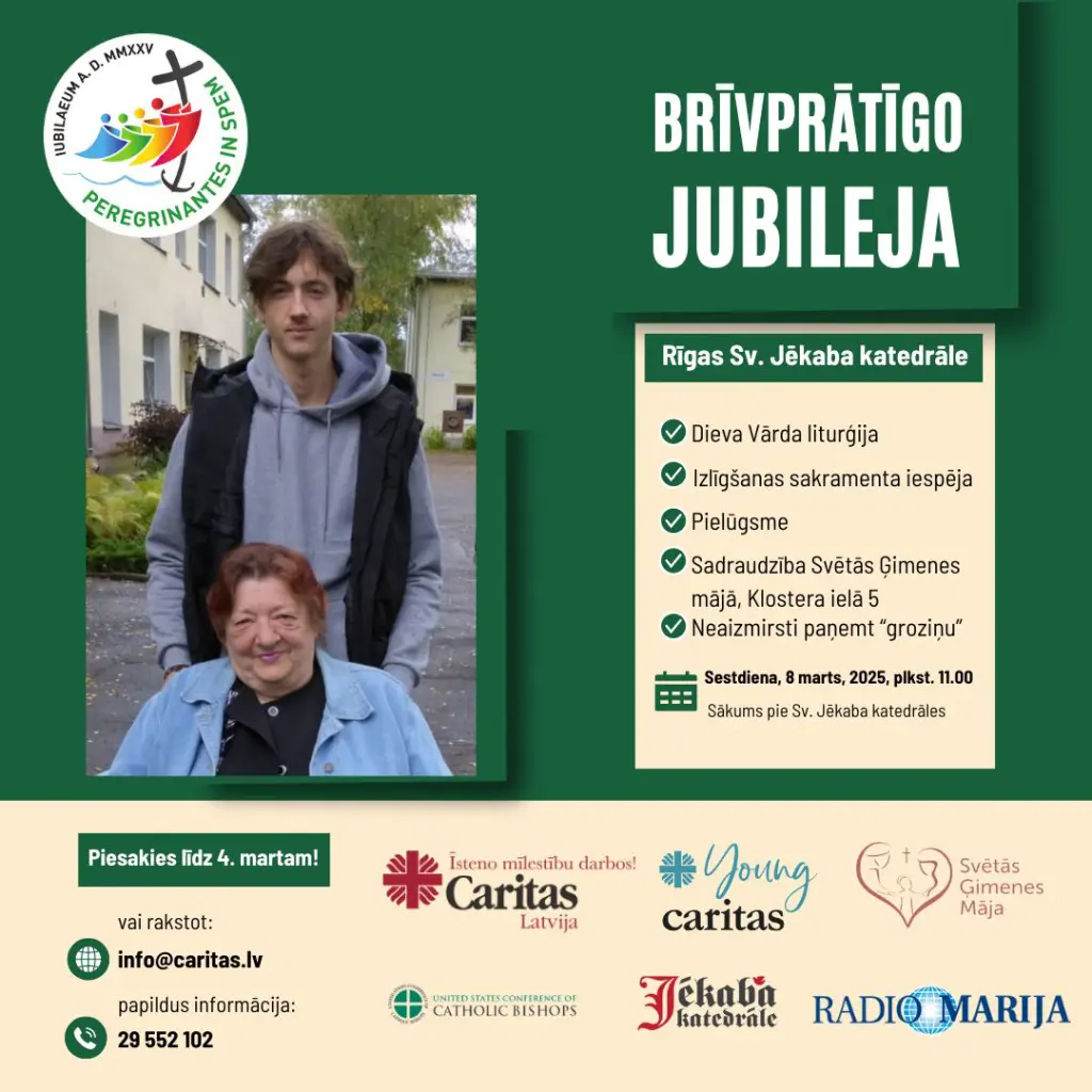 No 8. līdz 9. martam Jubilejas gada ietvaros Romā, Itālijā, notiks Brīvprātīgā darba jubileja. Pasākuma ietvaros dažādu organizāciju pārstāvjiem, kas ir iesaistīti brīvprātīgajā darbā, būs iespēja iziett cauri Svētajām durvīm, piedalīties dažādos kultūras, garīgos un mākslinieciskos pasākumos Romas laukumos, kā arī lūgties Svētajā Misē Svētā Pētera bazilikā. Ņemot vērā, ka ne visiem brīvprātīgajiem ir iespēja doties uz Romu, nodibinājums “Caritas Latvija” aicina svinēt Brīvprātīgo jubileju tepat Rīgā.