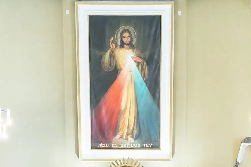 Tāpat kā visā pasaulē, tā arī Latvijā, cilvēki ilgojas pēc Dievišķās Žēlsirdības, uz kuru īpašā veidā norāda Jēzus svētglezna ar uzrakstu – Jēzu, es uzticos Tev -, un šī svētglezna atrodas arī Kauguru baznīcā virs galvenā altāra.