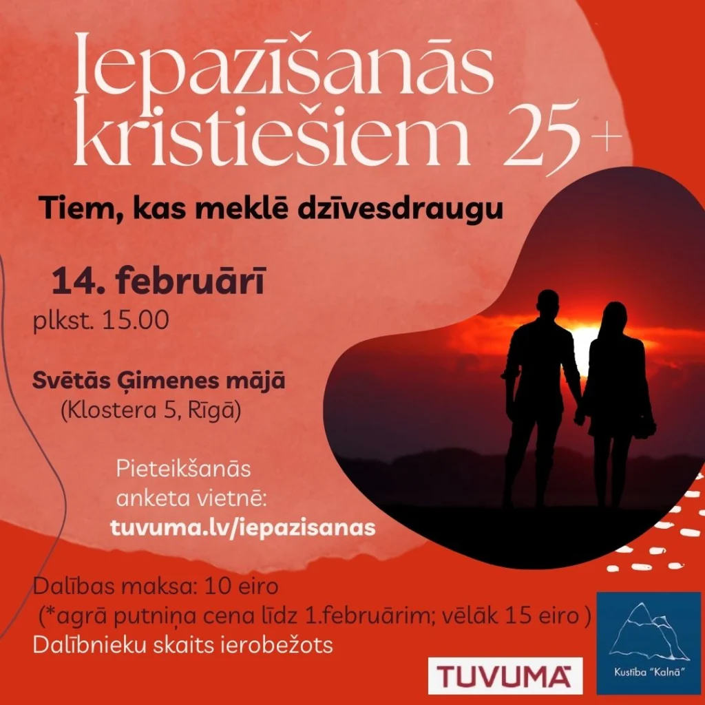 Nodibinājums “Kristīga dzīvesveida izpētes fonds” un medijs “Tuvumā.lv” šī gada 14. februārī rīkos pirmo klātienes iepazīšanās pasākumu kristiešiem, kuri meklē dzīvesdraugu, lai palīdzētu vientuļajiem ticīgajiem drosmīgi izkļūt no savas draudzes “burbuļa” un sastapt domubiedrus ar līdzīgu vērtību orientāciju.