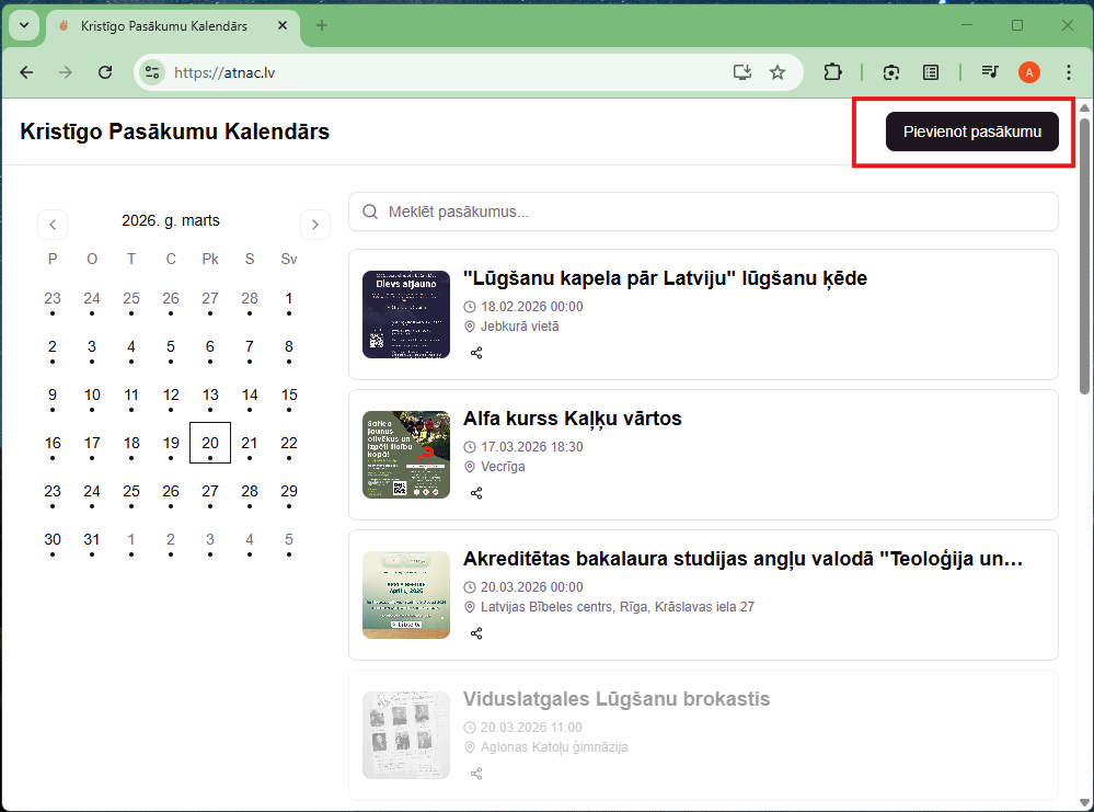 Lai veicinātu kristīgās vides izaugsmi un palīdzētu iedzīvotājiem ērtāk atrast garīgus notikumus savā tuvumā, ir uzsākta jauna, privāta iniciatīva – ekumēniska platforma Atnac.lv.