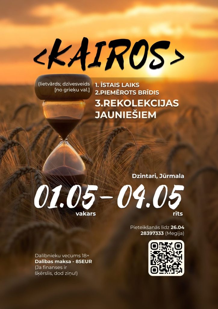 Kairos ir īpaša jezuītu garīgumā balstīta programma, kas paredzēta tieši jauniešiem. Rekolekcijas ir īpašs laiks, kurā mēs, noliekot malā ikdienu, mācāmies ieraudzīt Dieva klātbūtni savā dzīvē.