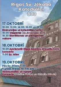 Šogad 800 gadu jubileju svin Rģias Svētā Jēkaba katedrāle. Šī gada augustā jubileju ieskandināja koncerts “Svētā Jēkaba stāsts”, savukārt šonedēļ katedrāles draudze jubileju svinēs trīs
