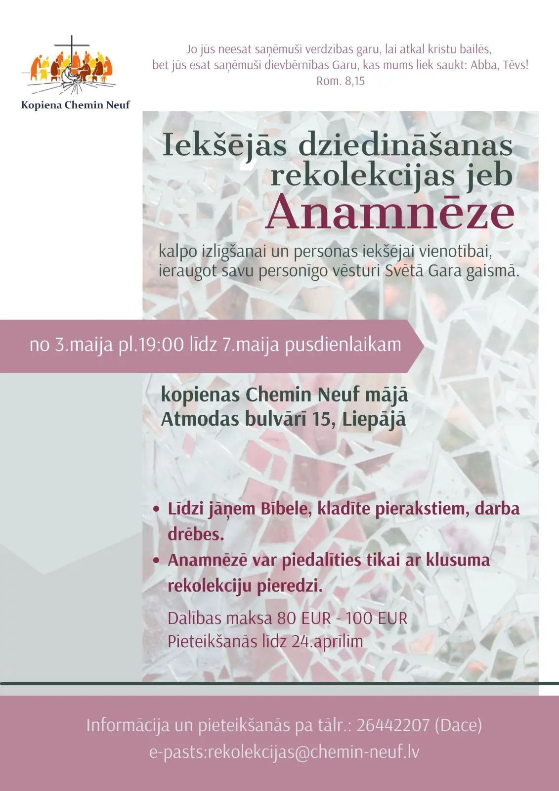 Home Visi notikumi Iekšējās dziedināšanas rekolekcijas jeb Anamnēze Iekšējās dziedināšanas rekolekcijas jeb Anamnēze Date 03. - 07.05.2022. Expired! Kategorijas Rekolekcijas