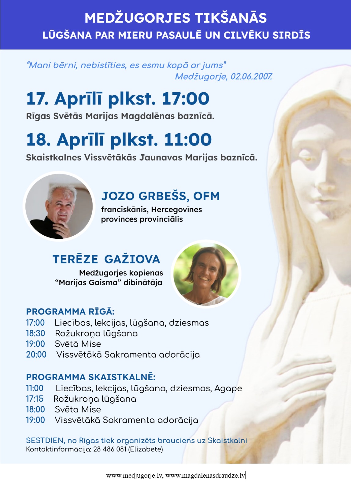 Home Visi notikumi Medžugorjes tikšanās Skaistkalnes Vissvētākās Jaunavas Marijas baznīcā Medžugorjes tikšanās Skaistkalnes Vissvētākās Jaunavas Marijas baznīcā Tags: katolislv Date 18.04.2026. Kategorijas Lūgšanu pasākums