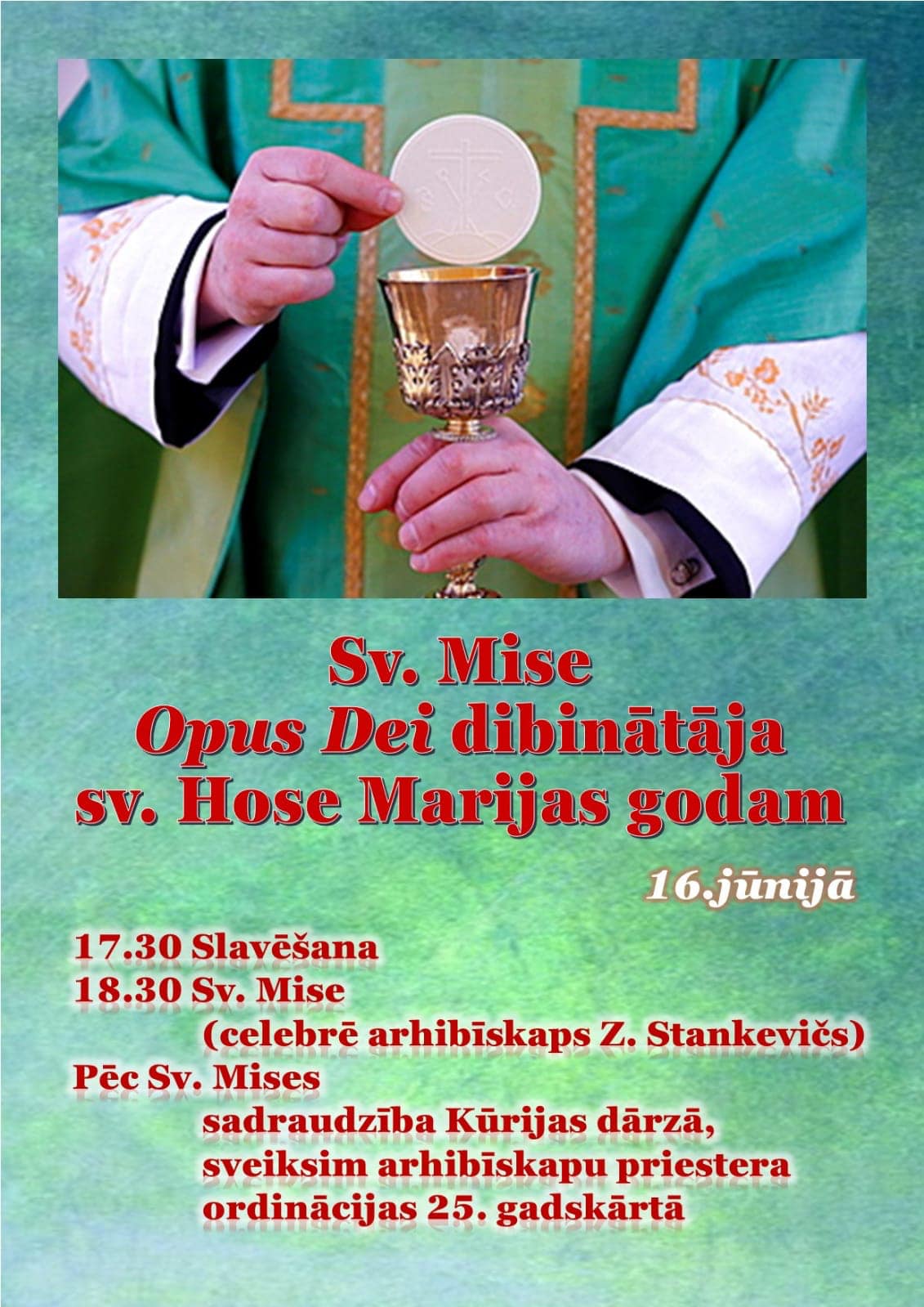 Home Visi notikumi Svētā Mise “Opus Dei” dibinātāja svētā Hose Marija Eskrivas godam Svētā Mise “Opus Dei” dibinātāja svētā Hose Marija Eskrivas godam Date 16.06.2021. Expired! Time 17:30 Kategorijas Lūgšanu pasākums