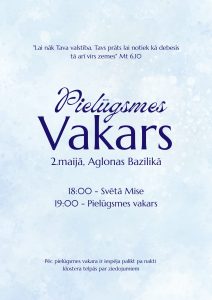 ,, Dievs atjauno zemes vaigu,, Ps 104, 30 Programma: 18:00 Svētā Mise 19:00 Slavēšana/pielūgsme Laiks klusumā *vakara laikā grēksūdzes un aizlūgšanas iespēja 21:15 Rožukronis *Pēc